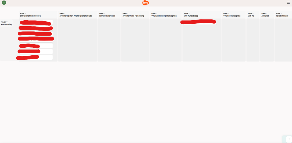 Med Cadana Fjernvarme byggede vi en samlet løsning, der dækker hele deres konverteringsproces fra A til Z. I stedet for at holde styr på tusindvis af sager på tværs af Excel-ark, Word-dokumenter og manuelle mailtråde, fik FORS et system, hvor hele flowet er struktureret, styret og dokumenteret fra start til slut. Løsningen er sat op som en tydelig proces med faste stadier, hvor hver sag automatisk bevæger sig fremad, når de nødvendige handlinger og oplysninger er udfyldt. Det betyder, at intet bliver glemt undervejs, og at opgaverne altid lander hos den rigtige medarbejder eller underleverandør på det rigtige tidspunkt. Samtidig sender systemet automatisk e-mails til borgeren ved hvert trin i processen, så de hele tiden ved, hvad der foregår, hvad der er aftalt, og hvad næste skridt er.